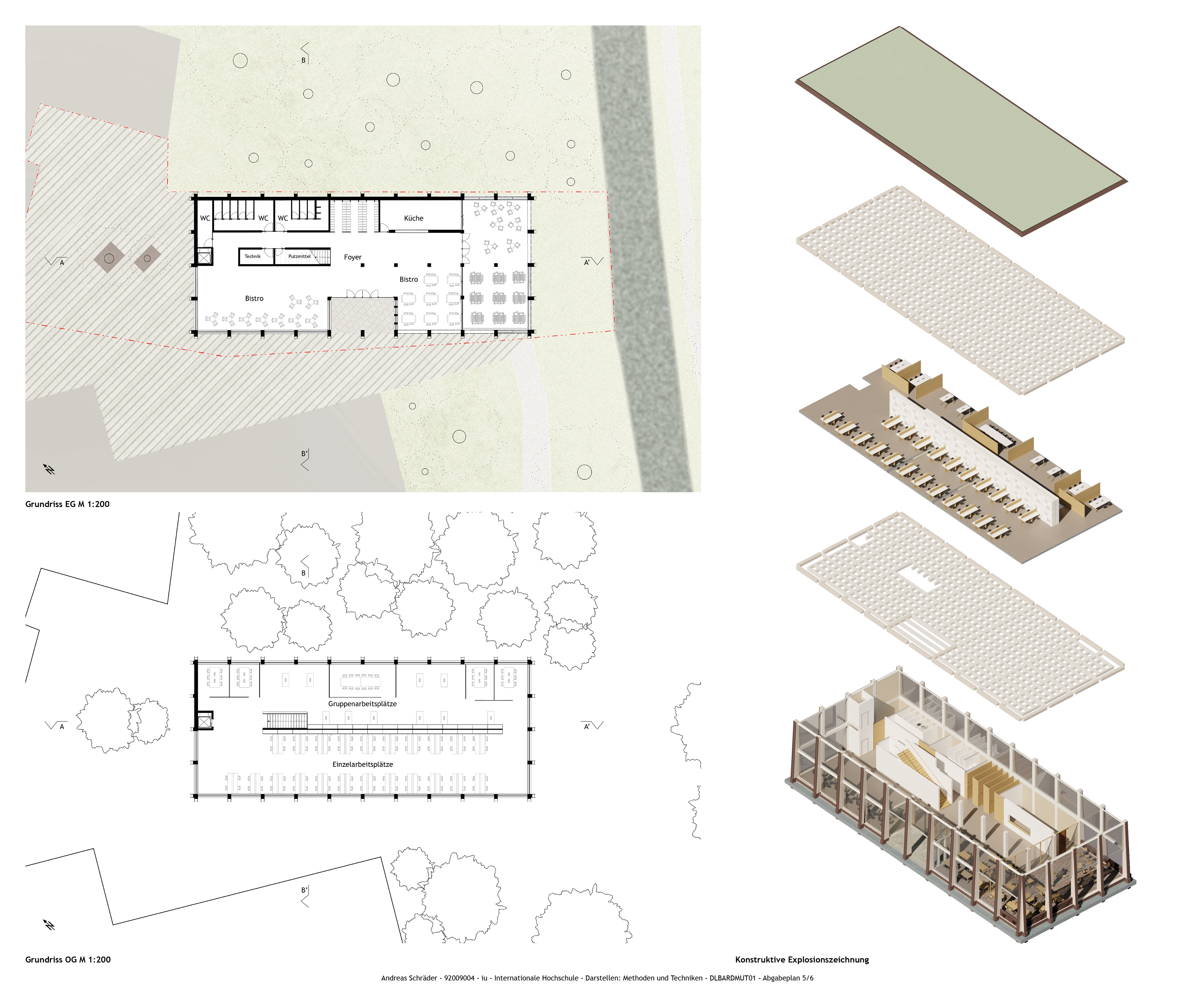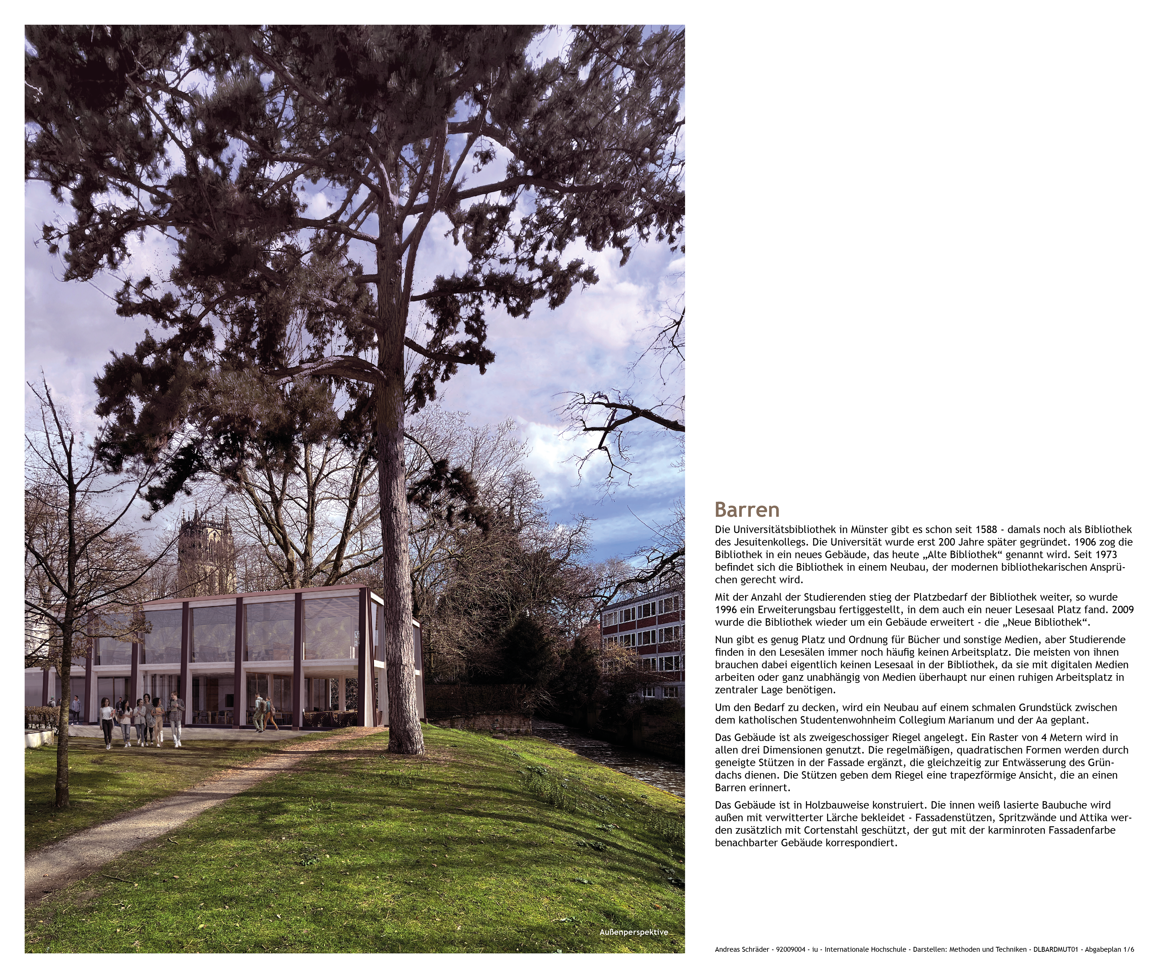 Entwurf für den Neubau eines Arbeitsplatzzentrums mit Bistro für die Universität Münster, Deutschland