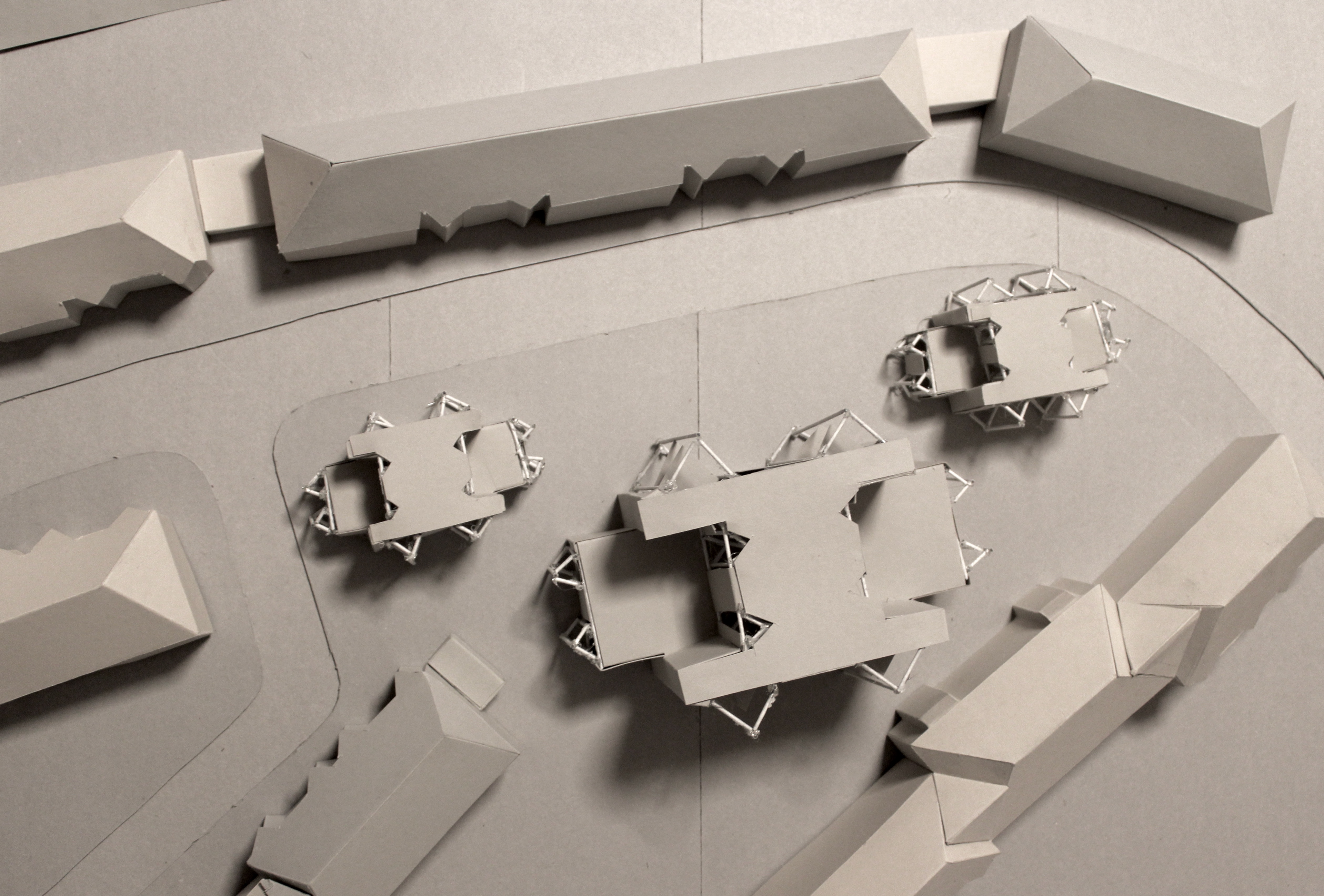 Um Platz für diese Maßnahme zu schaffen, müssen die Reihenhäuser Schleswiger Straße 9-17 abgerissen werden. Sie werden ersetzt durch drei strukturisomorphe Gebäude, die die Grundform der Wohngebäude mit dreieckigen Erkern zitiert, skaliert und ineinander verschränkt. Eines der Gebäude ist doppelt so groß wie die beiden anderen und leicht nach hinten versetzt, so dass kleine Plätze für die Gemeinschaft entstehen.