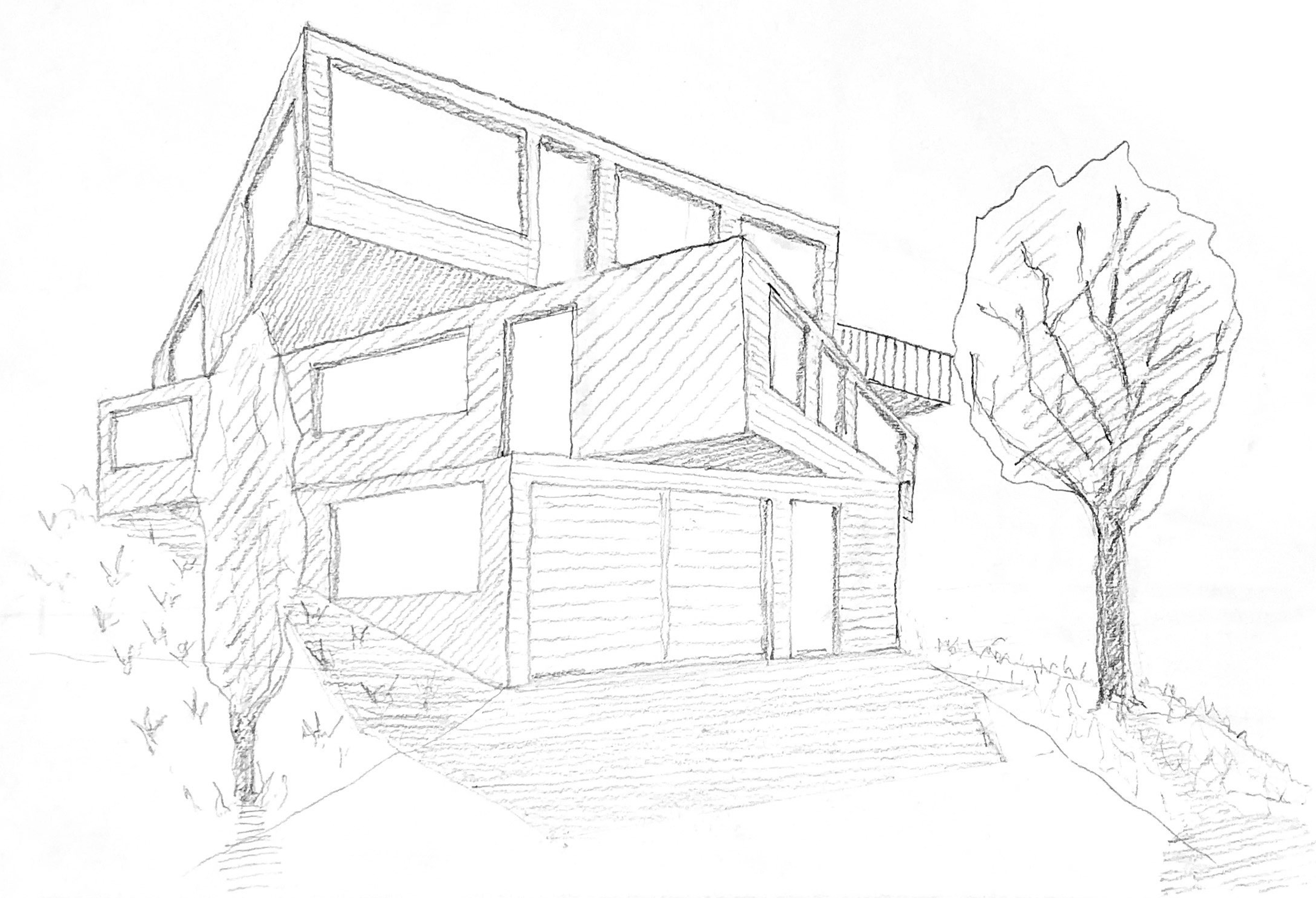 Ideenskizze für ein Einfamilienhaus mit Donaublick in Hanglage, Greifenstein, Österreich